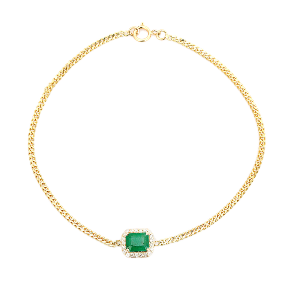 สร้อยข้อมือโซ่ขอบทองสีเหลือง14K ประดับเพชรฮาโลมรกตเครื่องประดับอัญมณีออกแบบได้ตามต้องการสำหรับเป็นของขวัญ