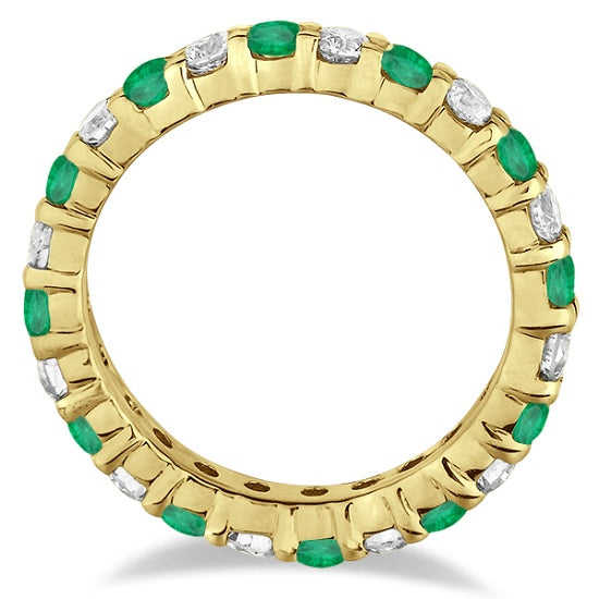 แหวนทองคำ 14K สีเหลือง ประดับมรกตและเพชร ดีไซน์วงแหวนแบบ Eternity น้ำหนัก 1.07 กะรัต ทองแท้ ชุบทองคำแท้ ดีไซน์โดดเด่น รูปทรงวงรี สำหรับเป็นเครื่องประดับแทนคำมั่นสัญญา