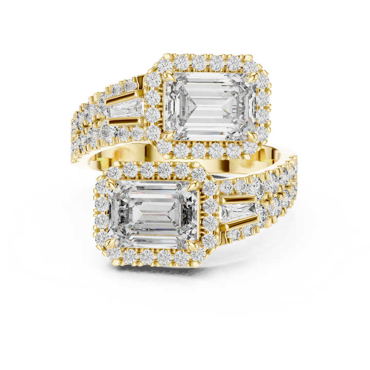 แหวนทองคำ 14K ประดับมรกตและเพชรทรงกลมและทรงบัคที่เพาะเลี้ยงในห้องปฏิบัติการสำหรับผู้หญิง | เพชรที่เพาะเลี้ยงใหม่