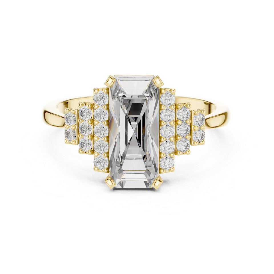 แหวนทองคำ 14K ประดับมรกตและเพชรทรงกลมเพาะเลี้ยงสำหรับผู้หญิง | ชุดลำลองสำหรับใส่ทุกวัน | เพชรที่เพิ่งเพาะเลี้ยง