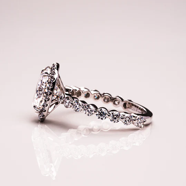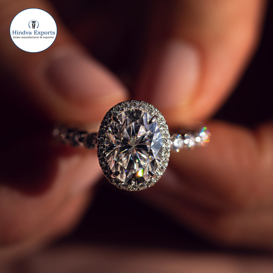 แหวนแต่งงานทองคำขาว 14K แท้ รับรองโดย IGI ดีไซน์คลาสสิกสำหรับผู้หญิง ประดับเพชรทรงรี 2 กะรัต เพชรเลี้ยงในห้องปฏิบัติการ ล้อมเพชรแบบ Halo Pave สำหรับงานปาร์ตี้