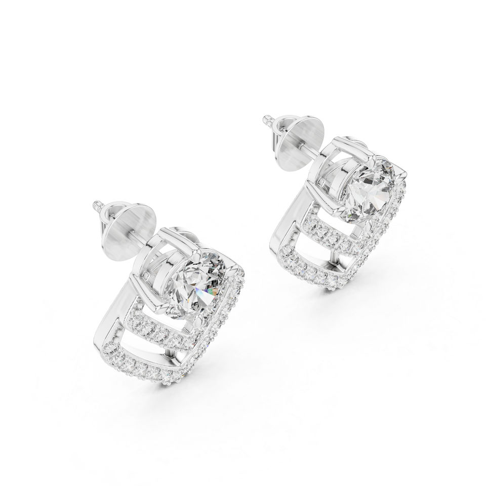 ต่างหูเพชรทรงกลมเพาะเลี้ยงในห้องปฏิบัติการ ทองคำ 14K สีเหลือง สำหรับใส่ทุกวัน | ต่างหูสำหรับใส่ทำงาน | เพชรที่เพิ่งเพาะเลี้ยง