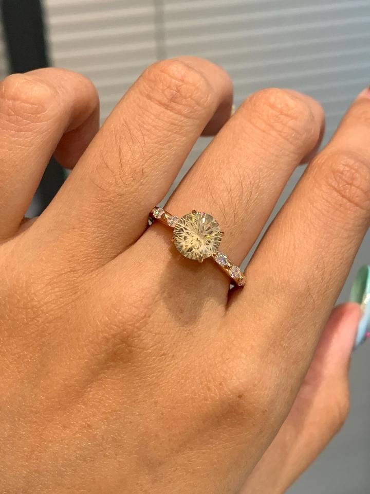 แหวนหมั้นเพชรสีเหลืองทอง14K สำหรับงานแต่งงานแหวน VS1 1.22CT ทรงกลมแบบยุโรปเก่าใช้ในห้องปฏิบัติการ
