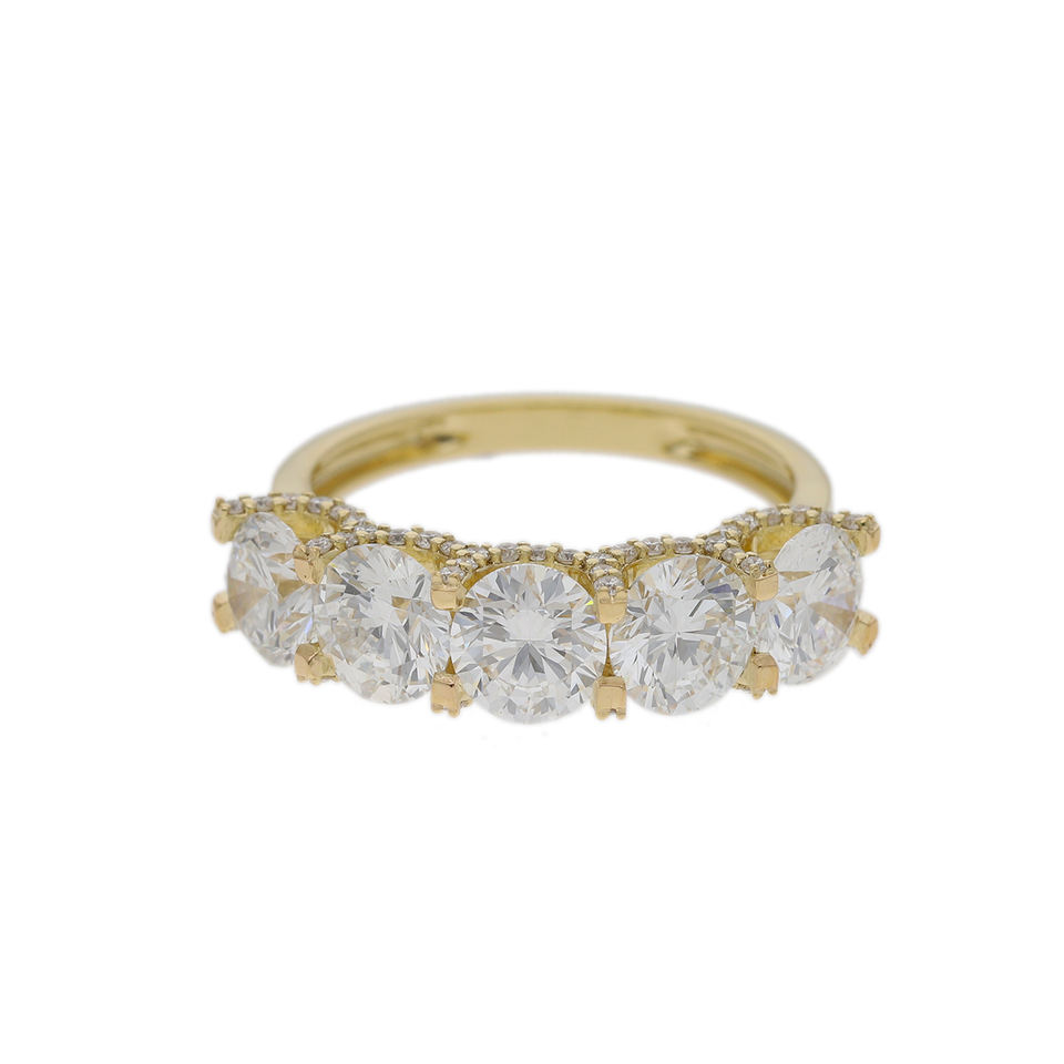 14K สีเหลืองทองห้าชิ้น2.8CTW แหวนเพชรธรรมชาติที่มีเพชรตัดสดใสและสายคาดเน้นปูสำหรับสไตล์ที่สง่างาม