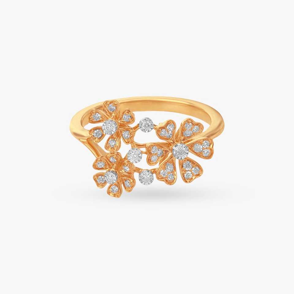 แหวนเพชรทรงดอกไม้ทองคำ 14K สำหรับผู้หญิง เพชรกลมทรงกลมเจียระไนแบบสปาร์คกลิ้ง แหวนครบรอบทรงดอกไม้ ของขวัญเครื่องประดับสุดโรแมนติก