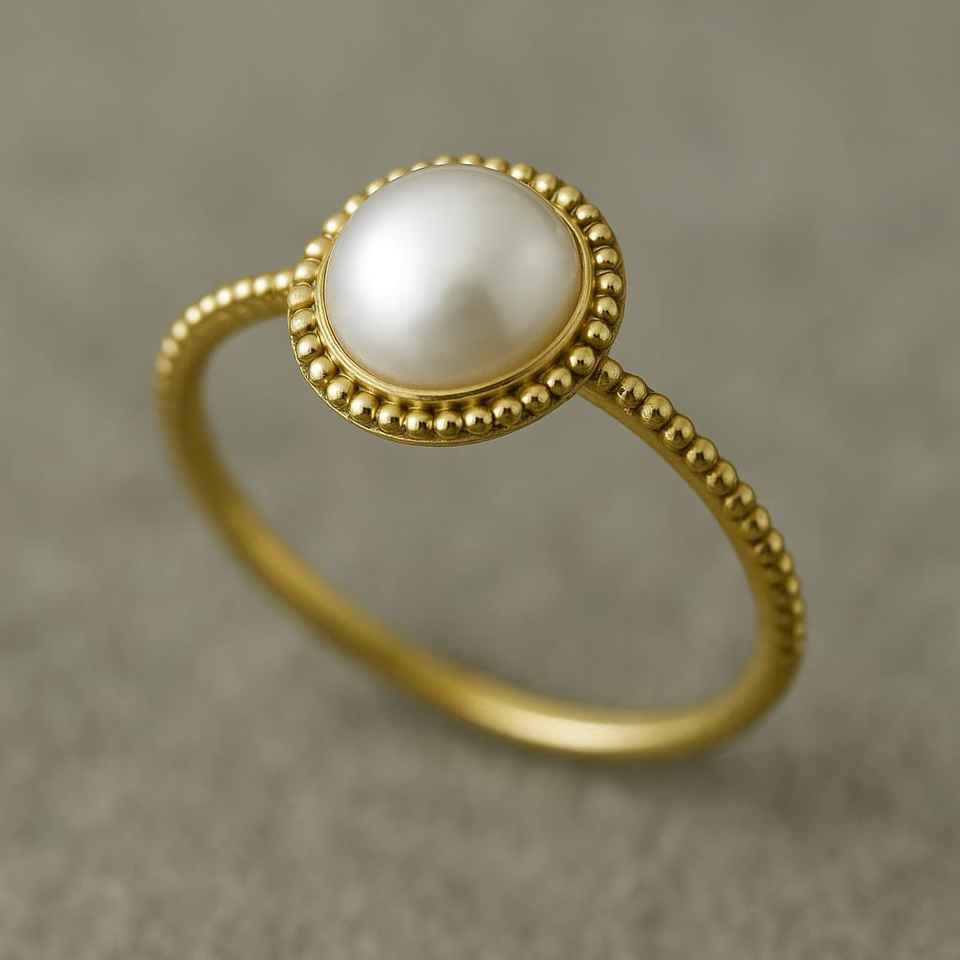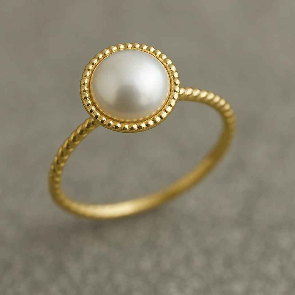 แหวนหมั้นไข่มุกน้ำจืดสีเหลืองทอง14K พร้อมเครื่องประดับแนวศิลปะสำหรับผู้หญิงและเด็กผู้หญิง