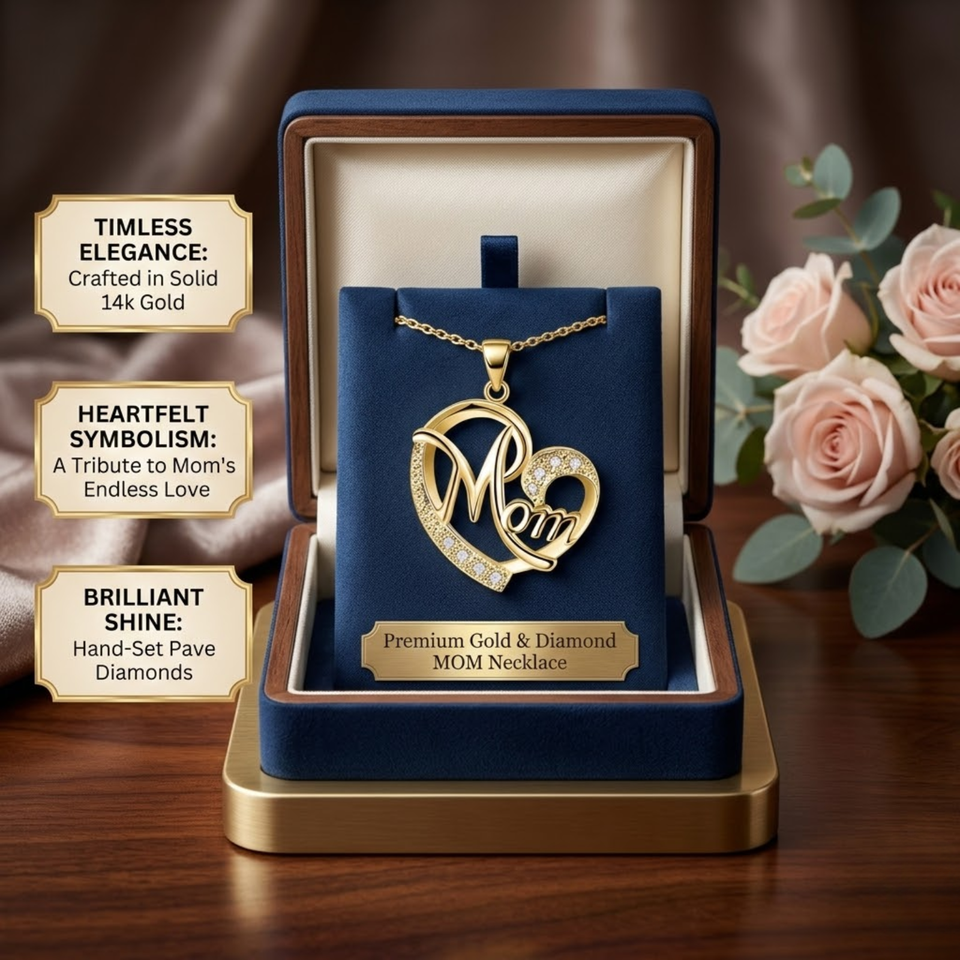 จี้รูปหัวใจทองคำ 14K ประดับเพชรแท้ทรงกลมสำหรับคุณแม่ ไม่รวมสายสร้อย | ของขวัญเครื่องประดับดีไซน์หรูหราสำหรับผู้หญิง