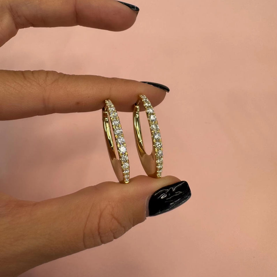 14K Yellow Gold Hoop Earrings With Round Cut Lab Grown Diamond Fashionable Engagement Gift For Girlfriend Women Jewelry