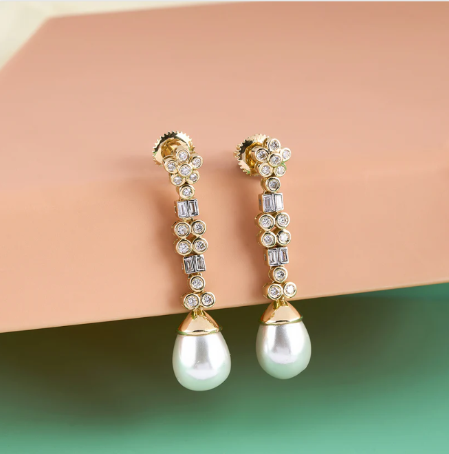 14K Yellow Gold IGI Certified Designer Drop Diamond Earrings for Evening Events Formal Parties Special Dates