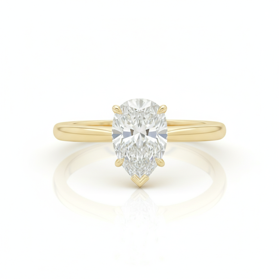 แหวนเพชรทรงลูกแพร์ 1-5 กะรัต สี E ความสะอาด VS1 ทองคำขาว 14K รับรองโดย IGI ฝังเพชรแบบ Prong Setting ดีไซน์ทันสมัยสำหรับผู้หญิง