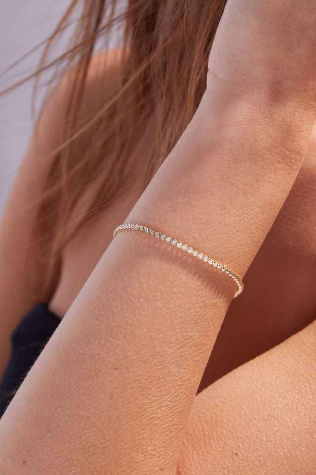 สร้อยข้อมือเทนนิส ประดับเพชรทรงกลมเจียระไน 2 มม. แบบฝังขอบ