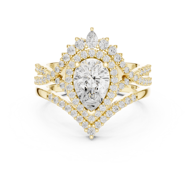 แหวนทองคำ 14K ประดับเพชรทรงหยดน้ำแบบรอยัล พร้อมดีไซน์รัศมีรูปทรงลูกแพร์แบบอิมพีเรียล ประดับมงกุฎสไตล์วินเทจ สง่างาม สำหรับผู้หญิง สไตล์ชาติพันธุ์ น้ำหนัก 4.11 กะรัต