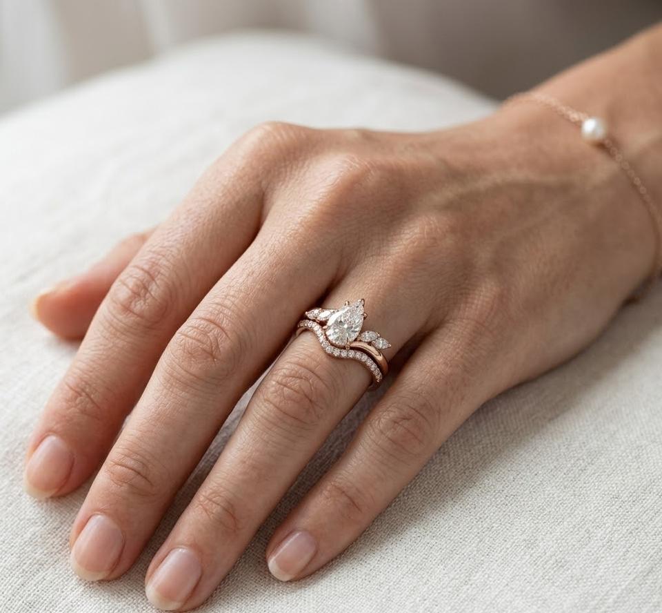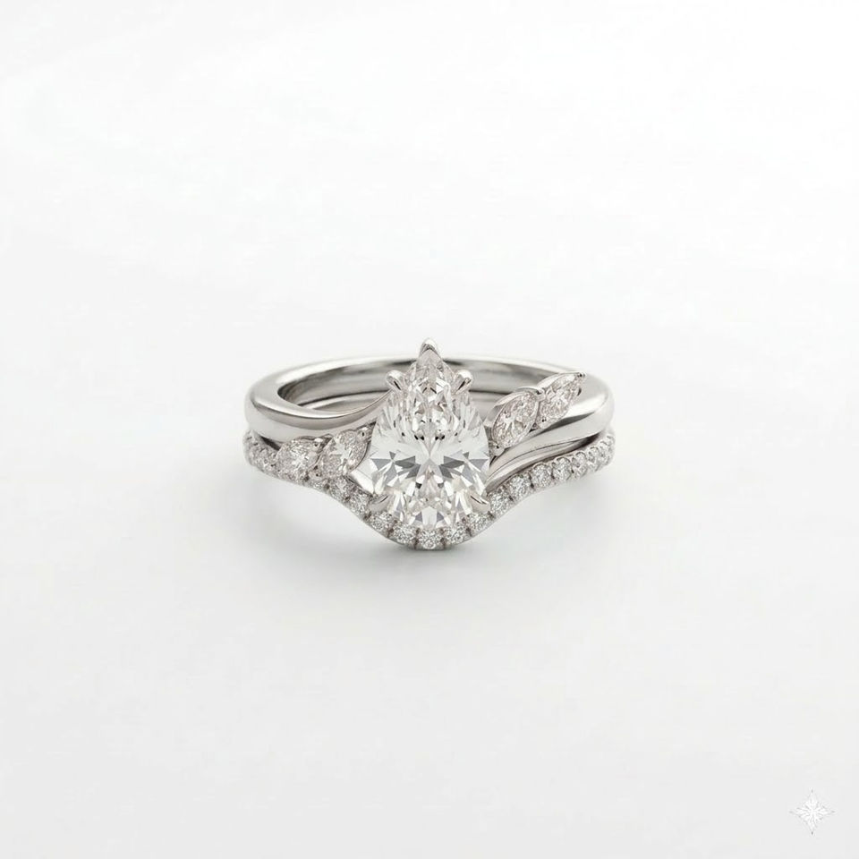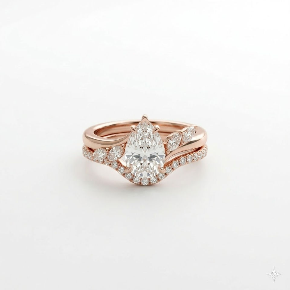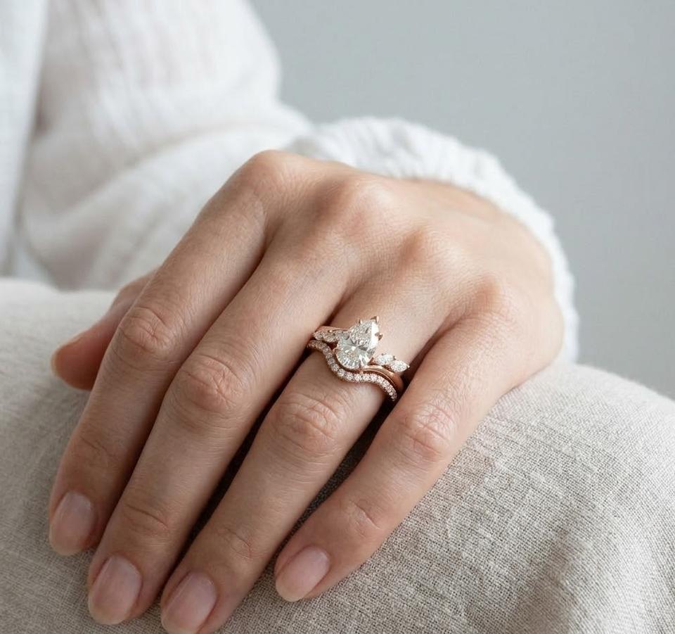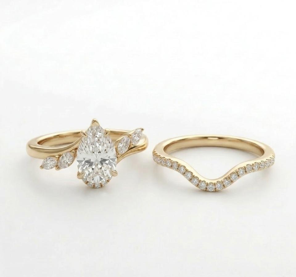 ชื่อผลิตภัณฑ์:ชุดแหวนทองคำ 14K ลายใบไม้ทรงลูกแพร์ พร้อมแหวนแต่งงาน