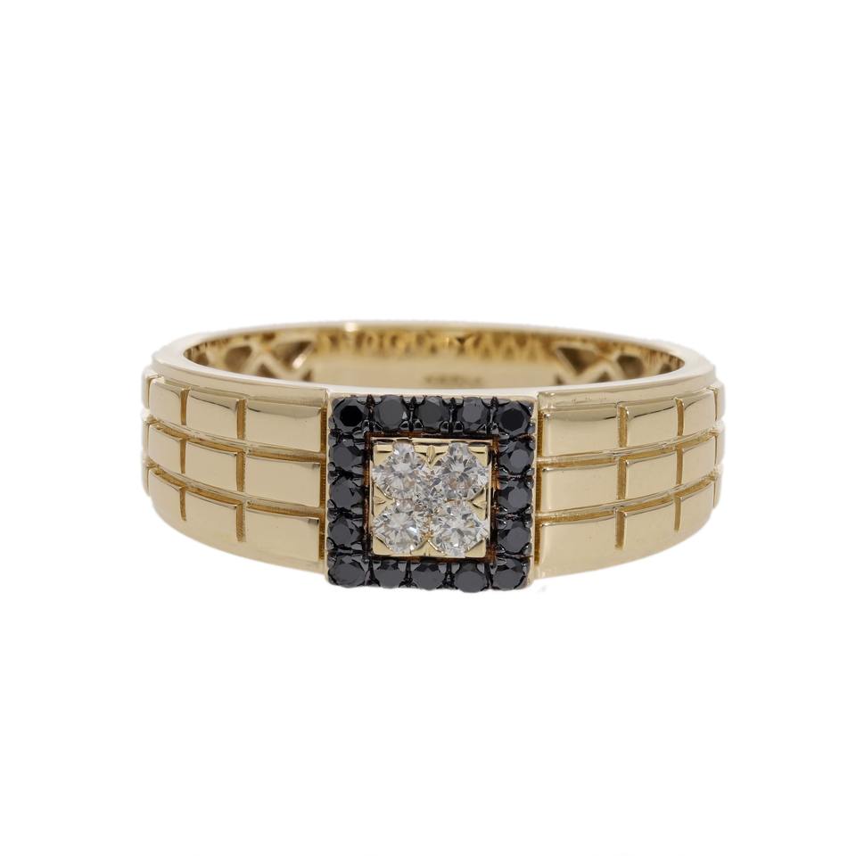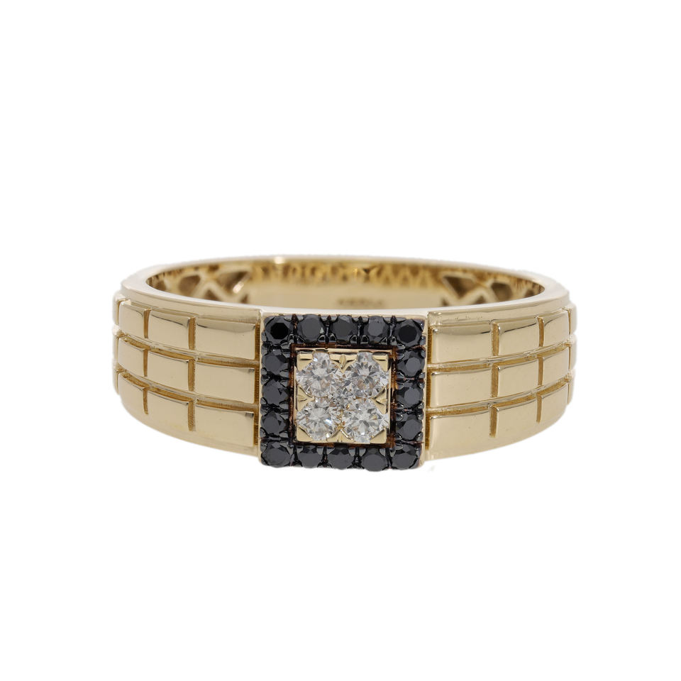 แหวนทอง14K สีเหลืองสำหรับผู้ชายประดับเพชรสีขาวธรรมชาติทรงสี่เหลี่ยมลายตะแกรงหรูหราชุบโรเดียมสุดคลาสสิกหรูหรา