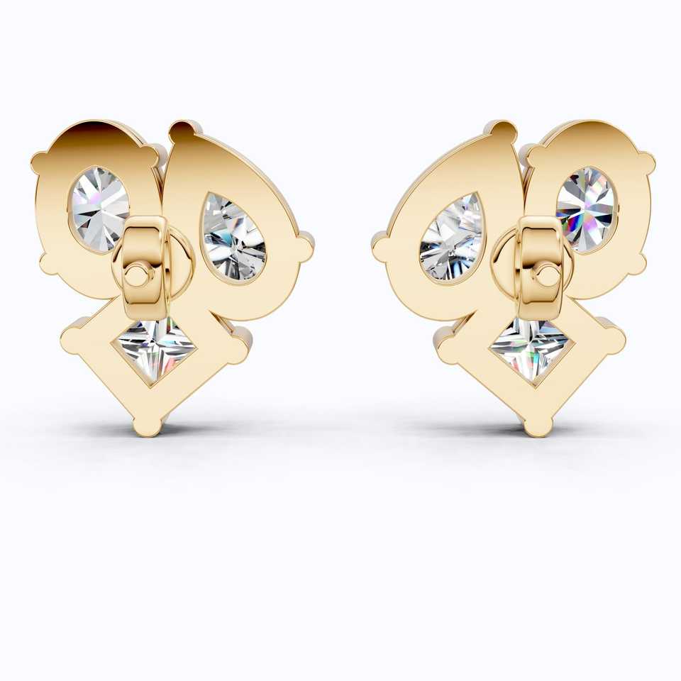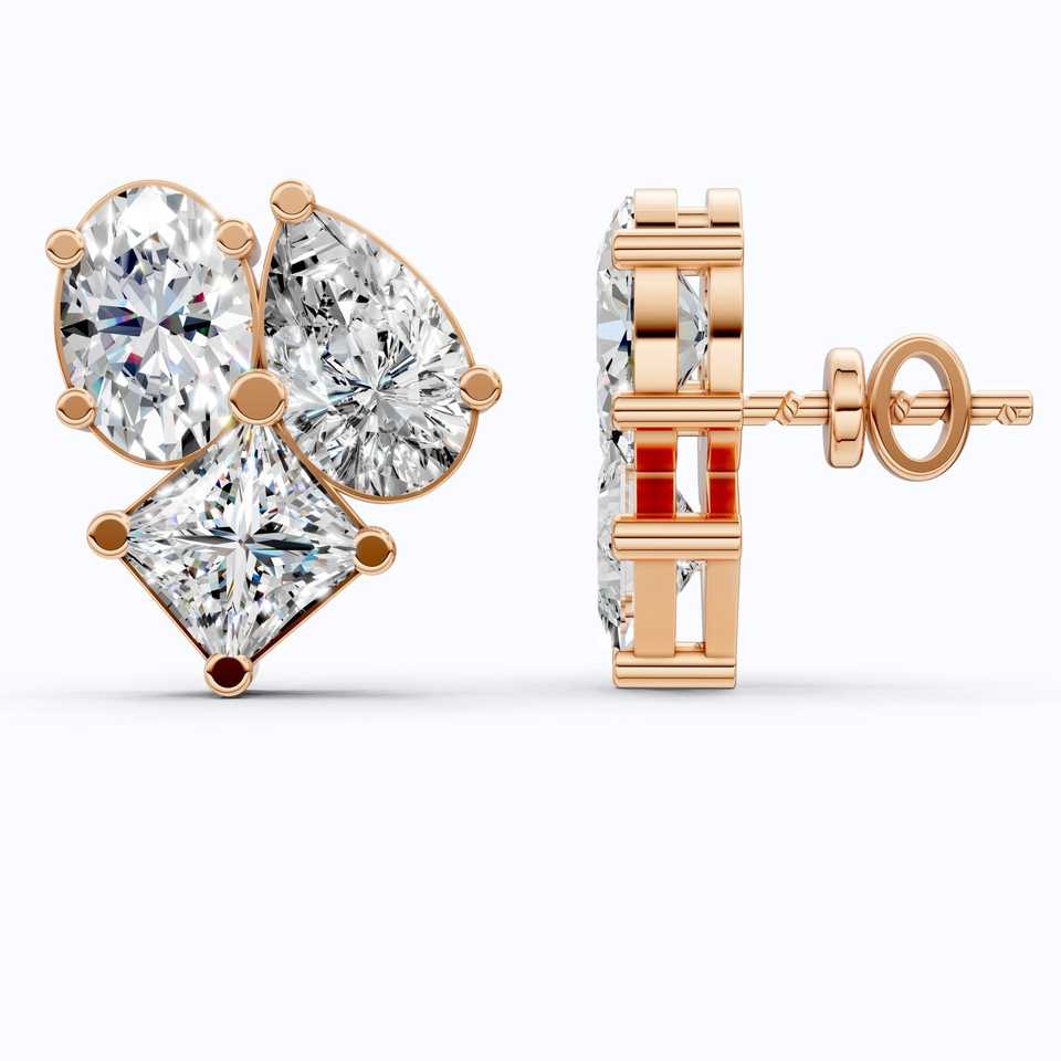 ออกแบบ: ต่างหูแบบติดหู ประดับหินสามเม็ด คลัสเตอร์ รูปทรงผสม
