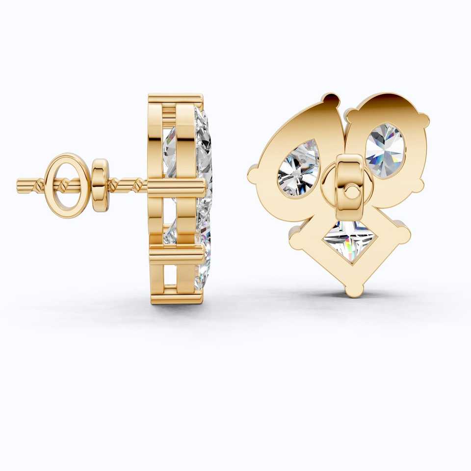 ต่างหูเพชรทรงคลัสเตอร์ทองคำ 14K ดีไซน์สามเม็ด เพชรเลี้ยงในห้องปฏิบัติการ เครื่องประดับชั้นดี ของขวัญแต่งงาน