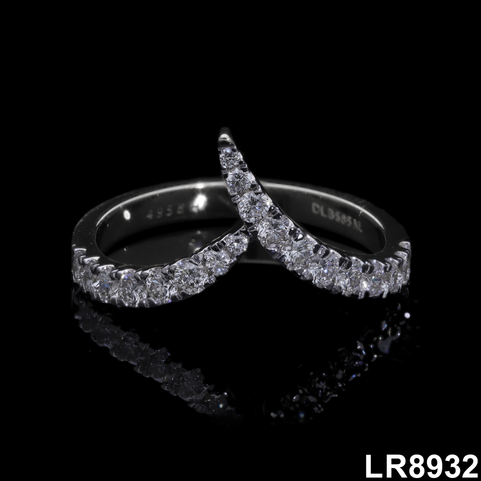 14K แหวนเพชรธรรมชาติสีเหลืองทองวงแหวนรูปตัววีทับซ้อนกันกับชุดมีง่ามกลมเพชรตัดสุกใส