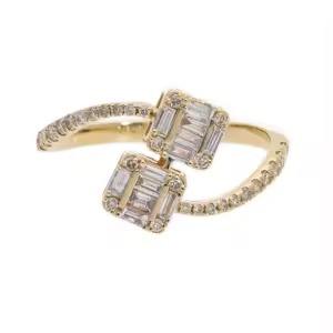 แหวนเพชรแบบเปิดประดับด้วยเพชรสีเหลืองทอง14K พร้อมเพชรธรรมชาติ0.51CTW สองชั้นประดับด้วยเหลี่ยมเพชรพลอยทันสมัย