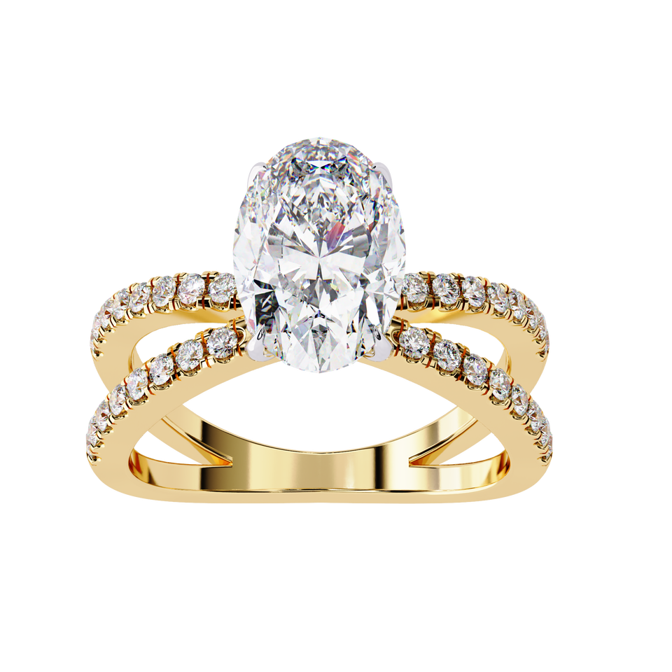 แหวนหมั้นเพชรรูปวงรีสีเหลืองทองขนาด9.6มม. ทำจากสแตนเลสสตีล1.52กะรัตเพชรโมอิส