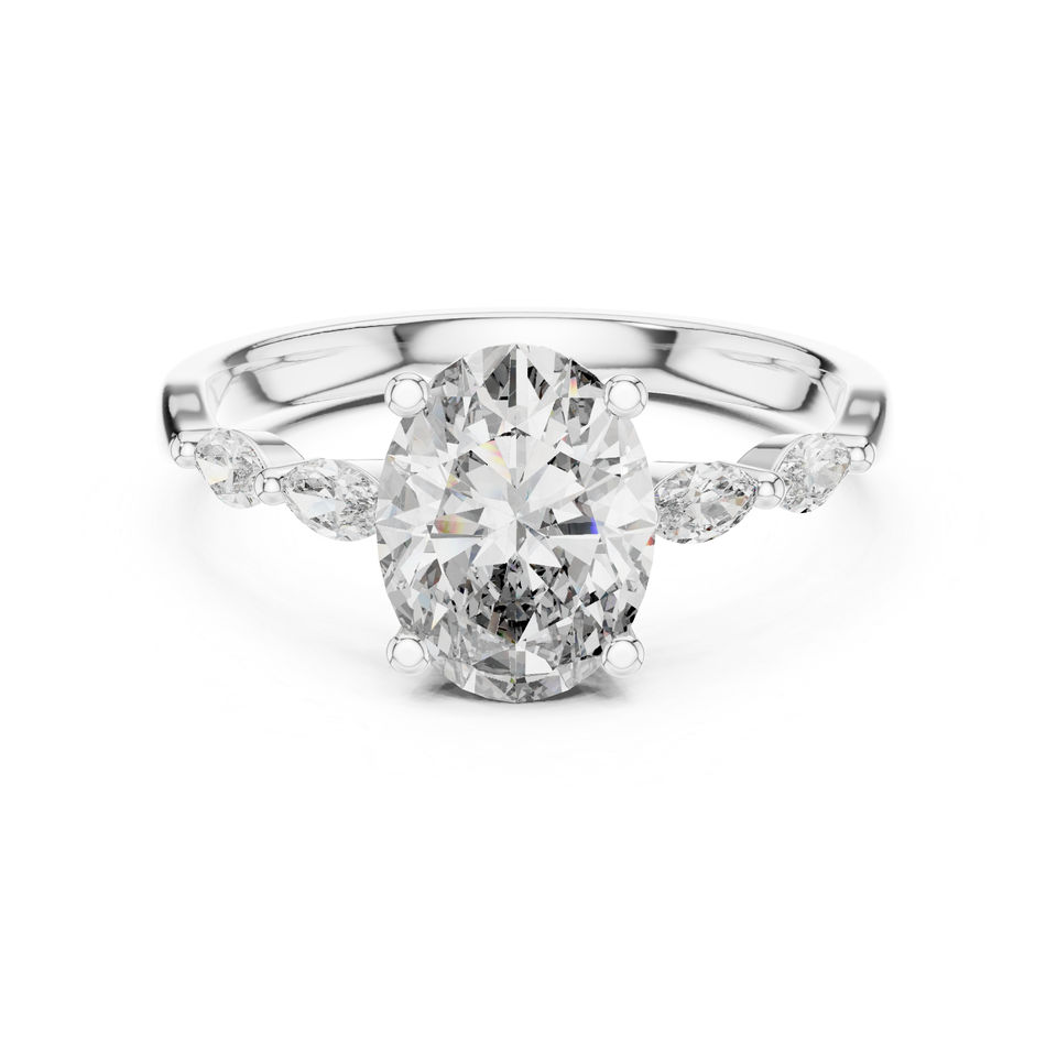 แหวนทองคำ 14K รูปไข่และรูปมาร์คีส์ประดับเพชรเพาะเลี้ยงสำหรับผู้หญิง | ชุดทำงาน | เพชรที่เพิ่งเพาะเลี้ยง