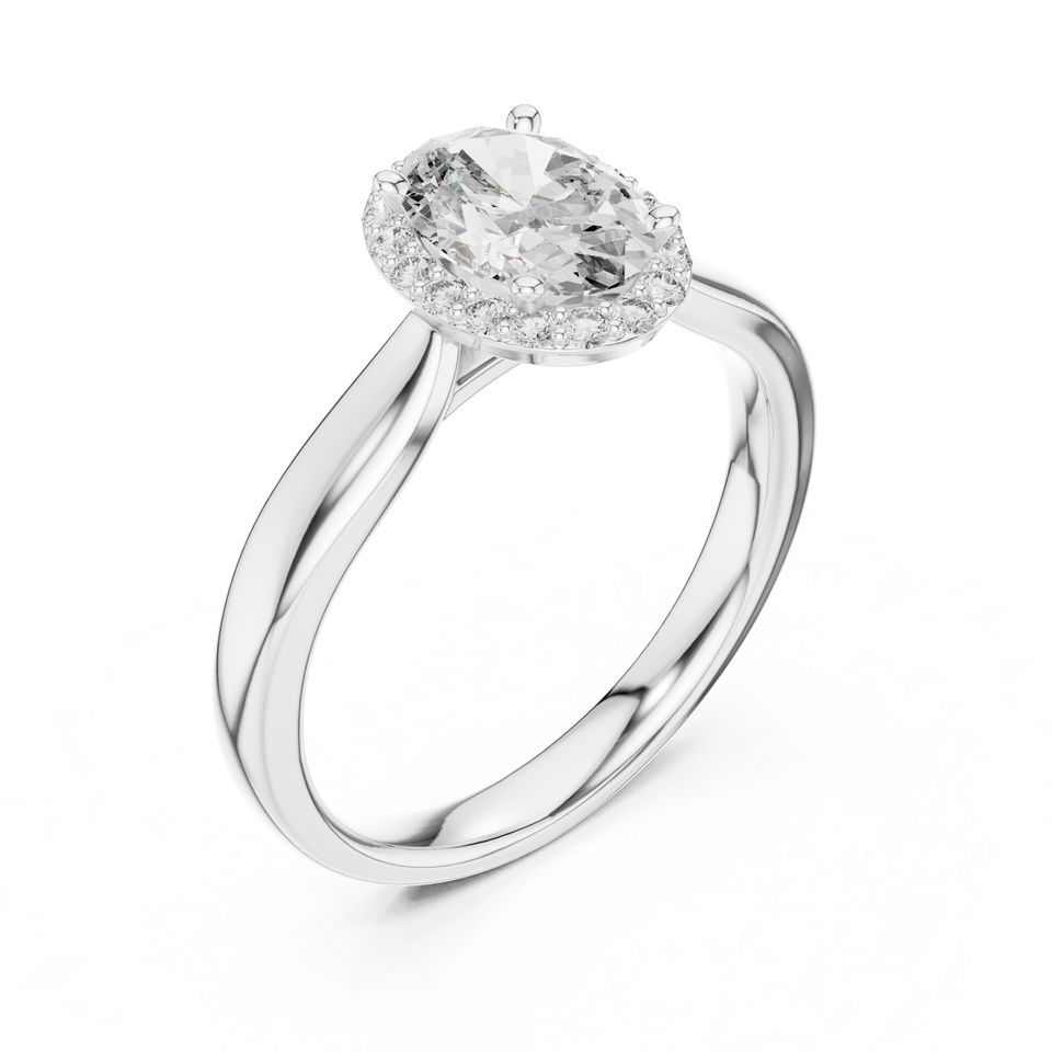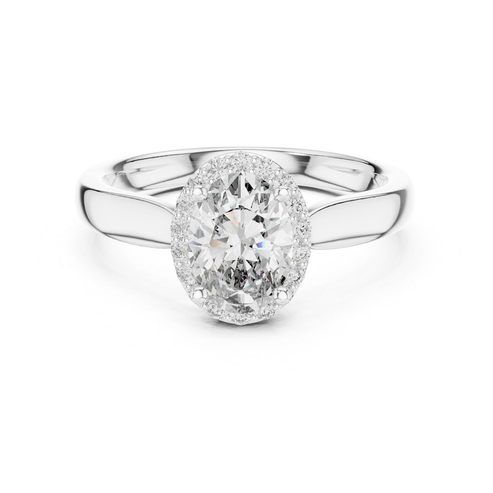 แหวนหมั้นเพชรทรงรีและทรงกลมเพาะเลี้ยงในห้องปฏิบัติการ ทองคำ 14K สีเหลือง สำหรับผู้หญิง | เพชรที่เพิ่งเพาะเลี้ยง