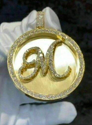 14K Yellow Gold Plated 4Ct Round Real Moissanite Pendant Customizable Disk Name Charm for Parties