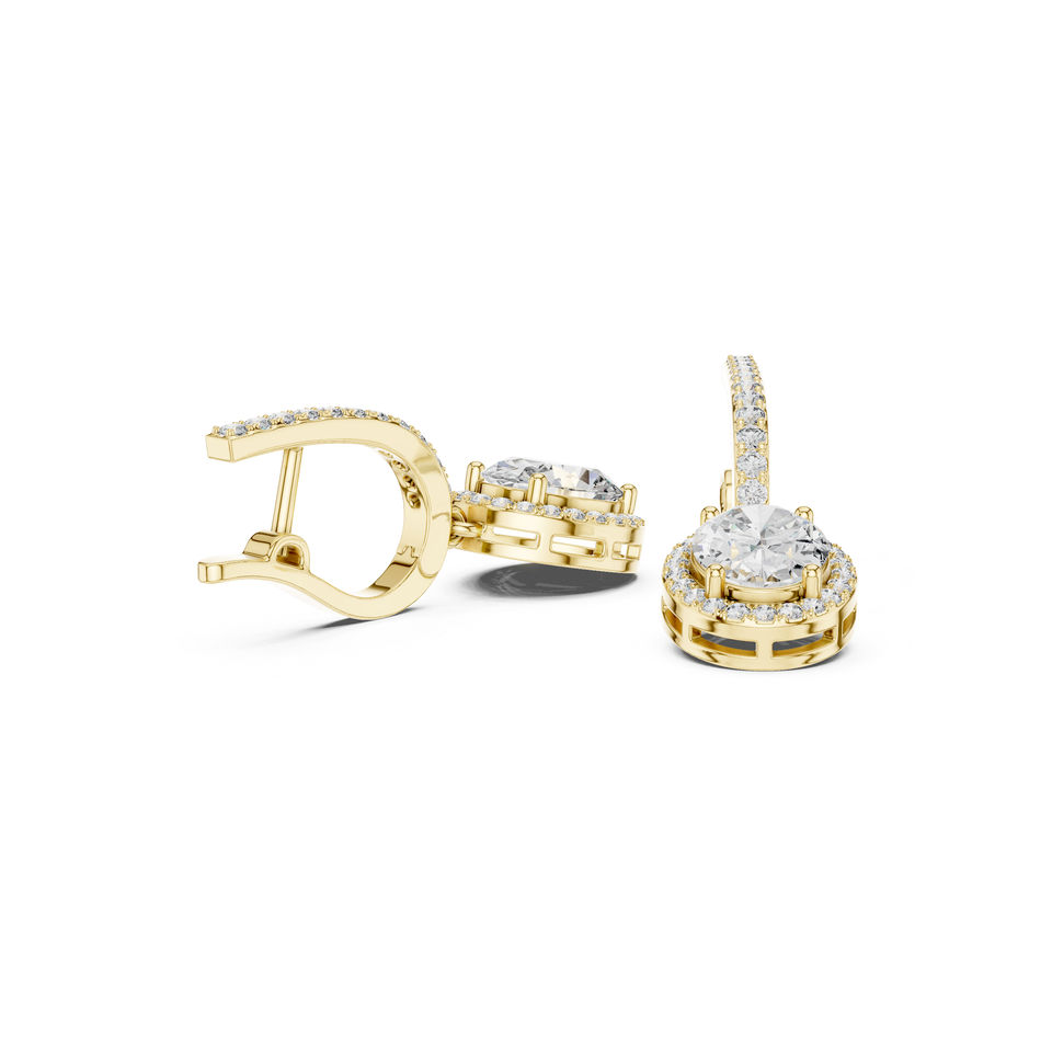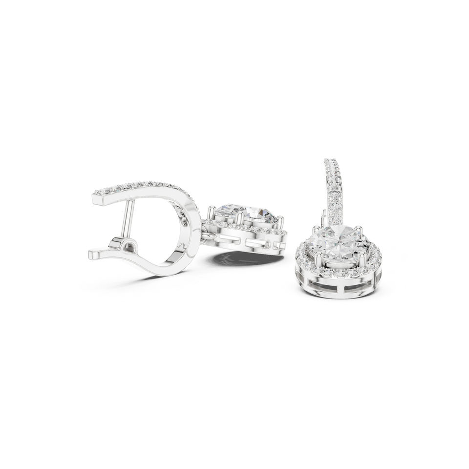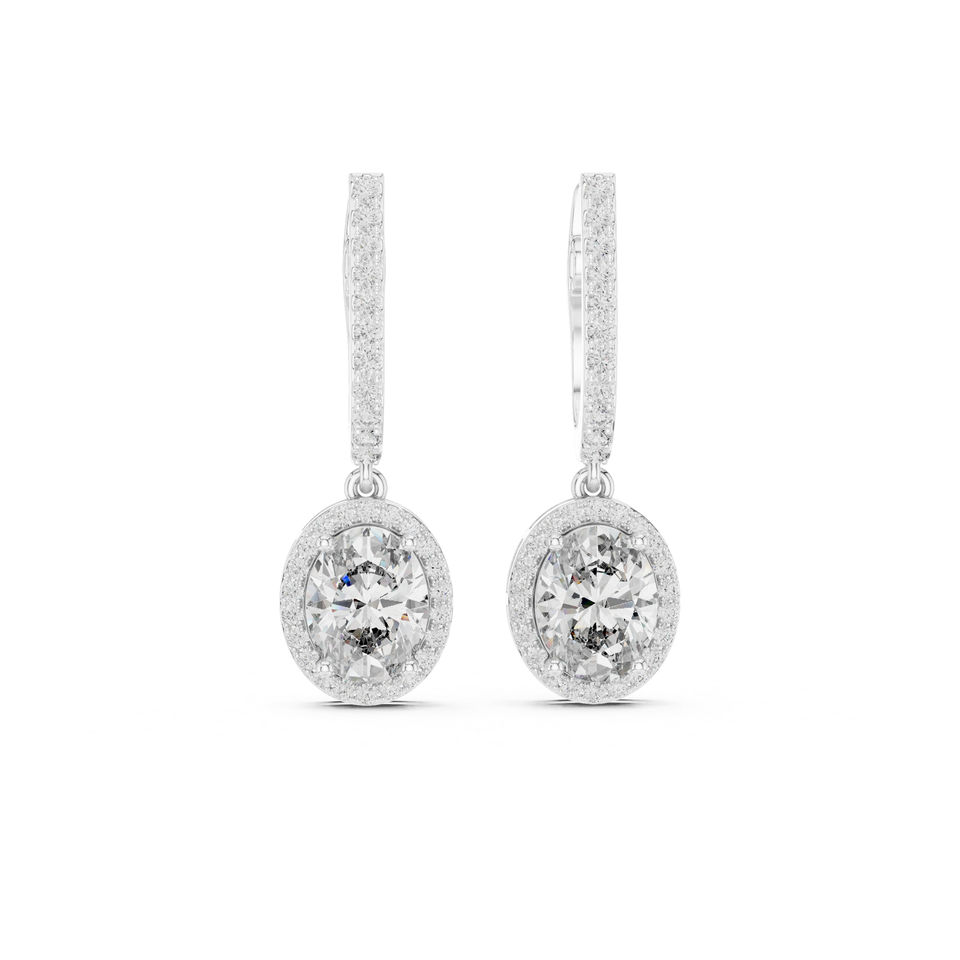ต่างหูเพชรรูปไข่เคลือบทองคำขาว 14K สำหรับผู้หญิง 4.02 กะรัต ได้รับการรับรองจาก IGI | เพชรที่เพิ่งเพาะเลี้ยง