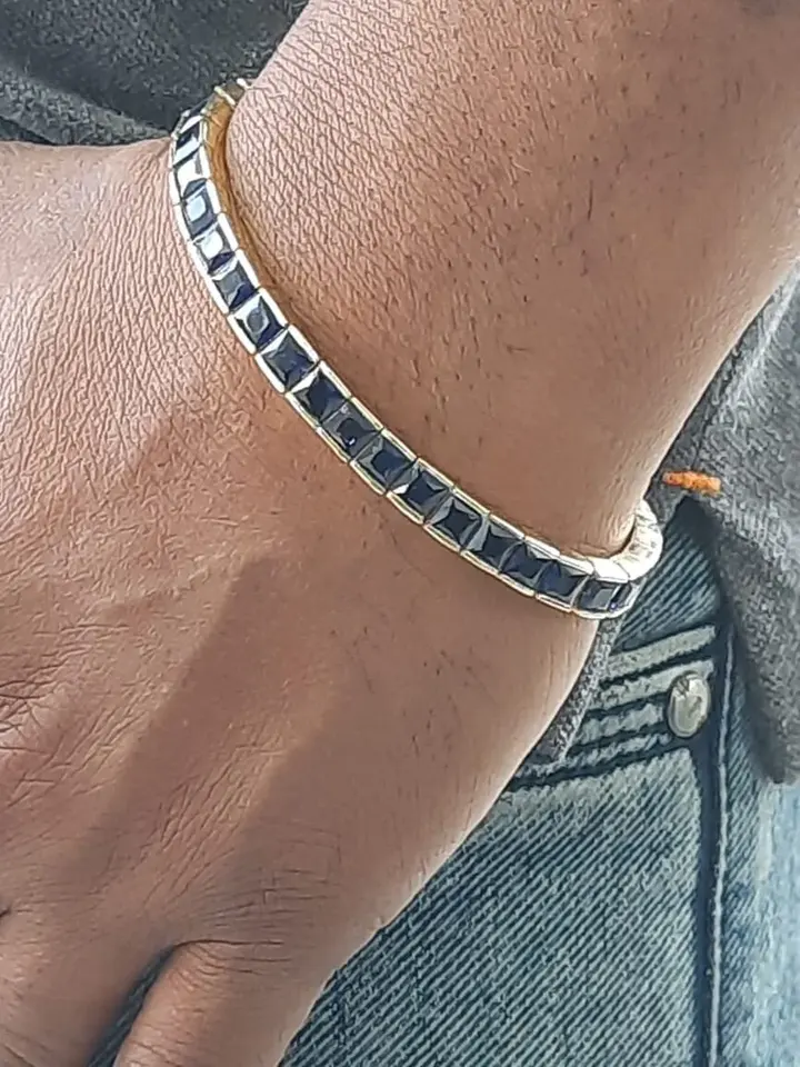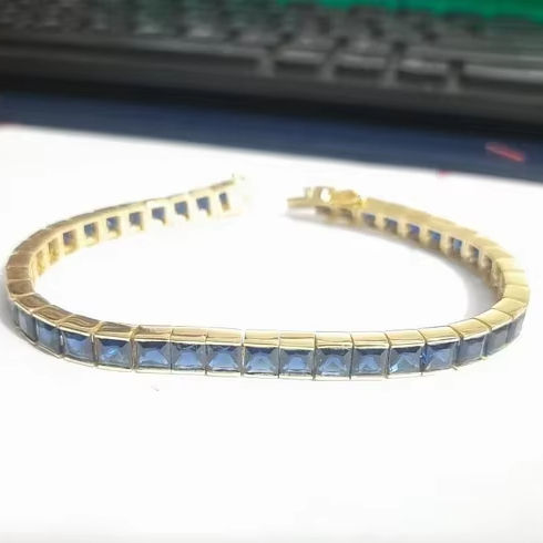 14K Yellow Gold Plated Unisex Tennis Bracelet Fashion Jewelry Natural Blue Moissanite Stone Diamond Stainless Steel Gift