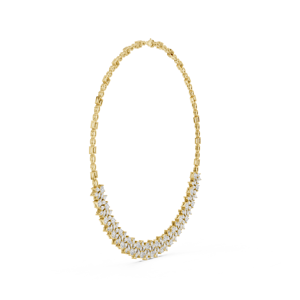 สร้อยคอทองคำ 14K สีเหลือง ประดับเพชรทรงปรินเซสคัท ผลิตในห้องปฏิบัติการ ชุบโรเดียม รุ่น Aurora Bloom RegalVine