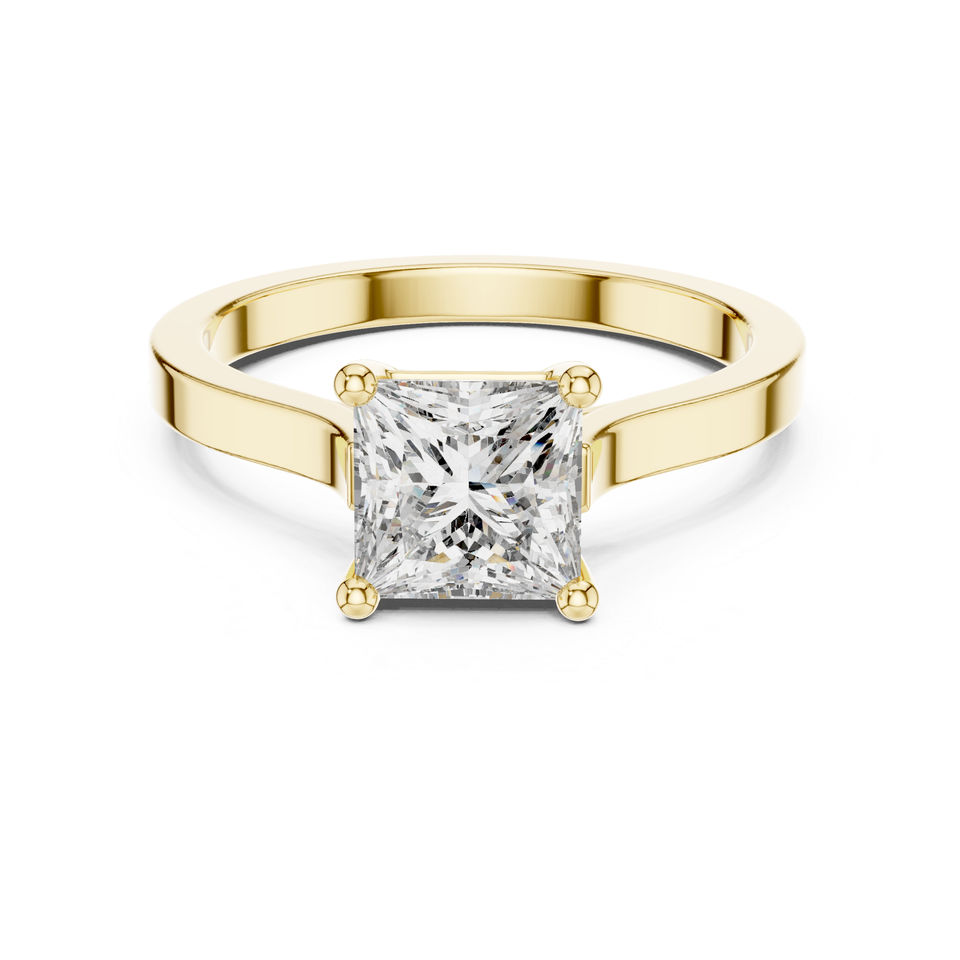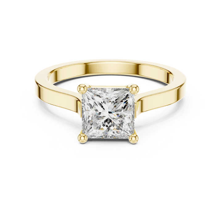 แหวนหมั้นเพชรแล็บโกรว์ทรงปรินเซส ทองคำ 14K สีเหลือง สำหรับผู้หญิง | เพชรที่เพิ่งเพาะเลี้ยง