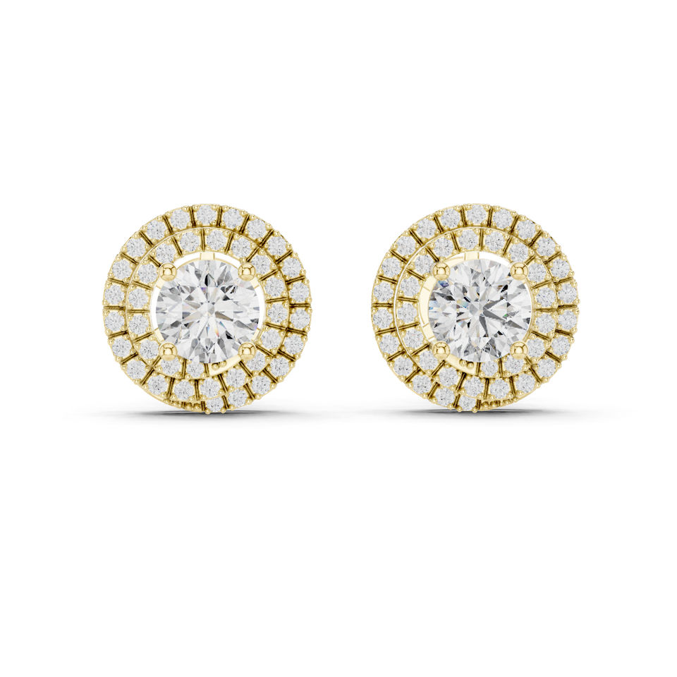 ต่างหูเพชรทรงหยดน้ำทรงกลมสีเหลืองทอง 14K ที่เพาะเลี้ยงในห้องปฏิบัติการ | ต่างหูสำหรับใส่ทำงาน | เพชรที่เพาะเลี้ยงใหม่