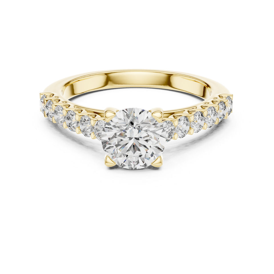 แหวนหยดน้ำเพชรทรงกลมสีเหลืองทอง 14K สำหรับผู้หญิง | ชุดทำงาน | เพชรที่เพาะเลี้ยงใหม่