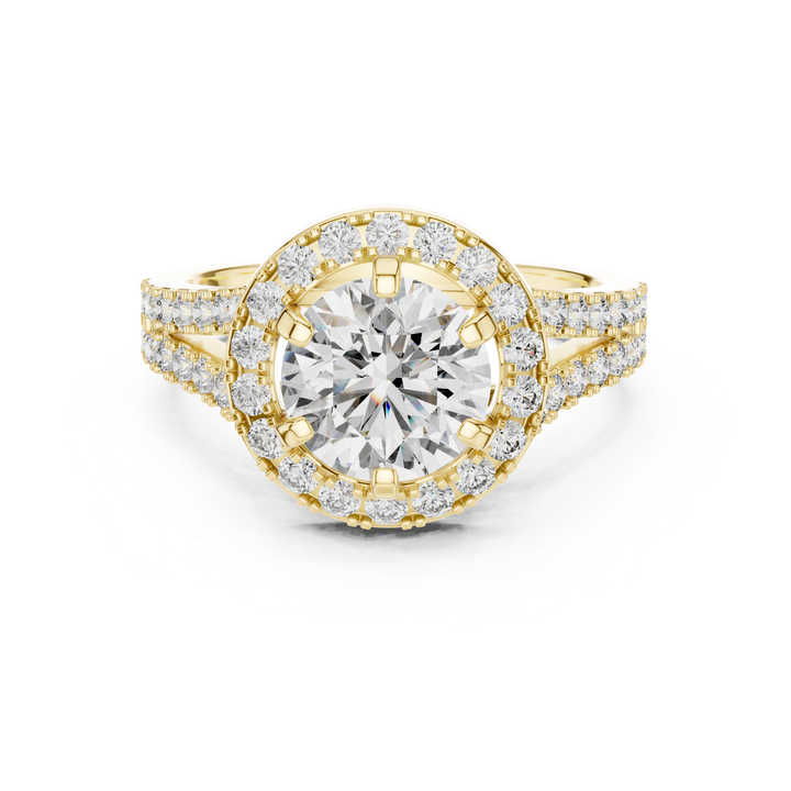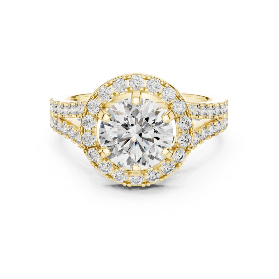 แหวนหยดน้ำเพชรทรงกลมสีเหลืองทอง 14K สำหรับผู้หญิง | แหวนสำหรับงานปาร์ตี้ | เพชรที่เพาะเลี้ยงใหม่