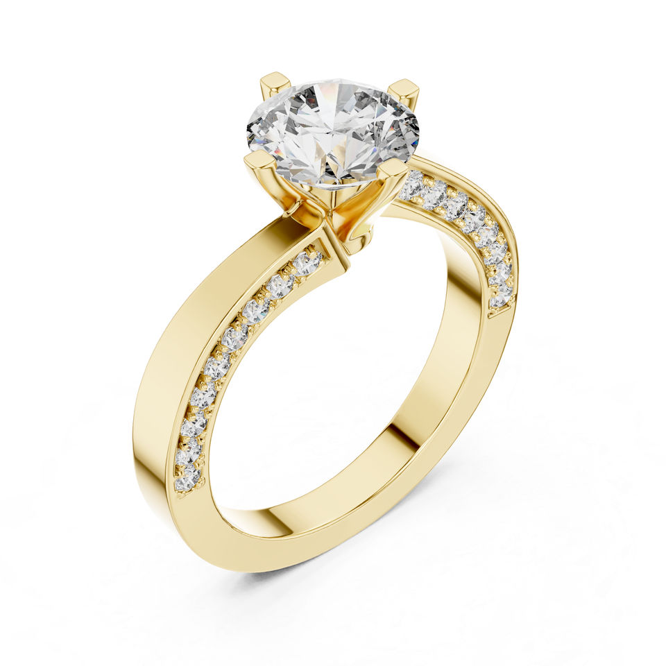 แหวนหยดน้ำเพชรทรงกลมสีเหลืองทอง 14K สำหรับผู้หญิง | เครื่องประดับเจ้าสาว | เพชรที่เพาะเลี้ยงใหม่