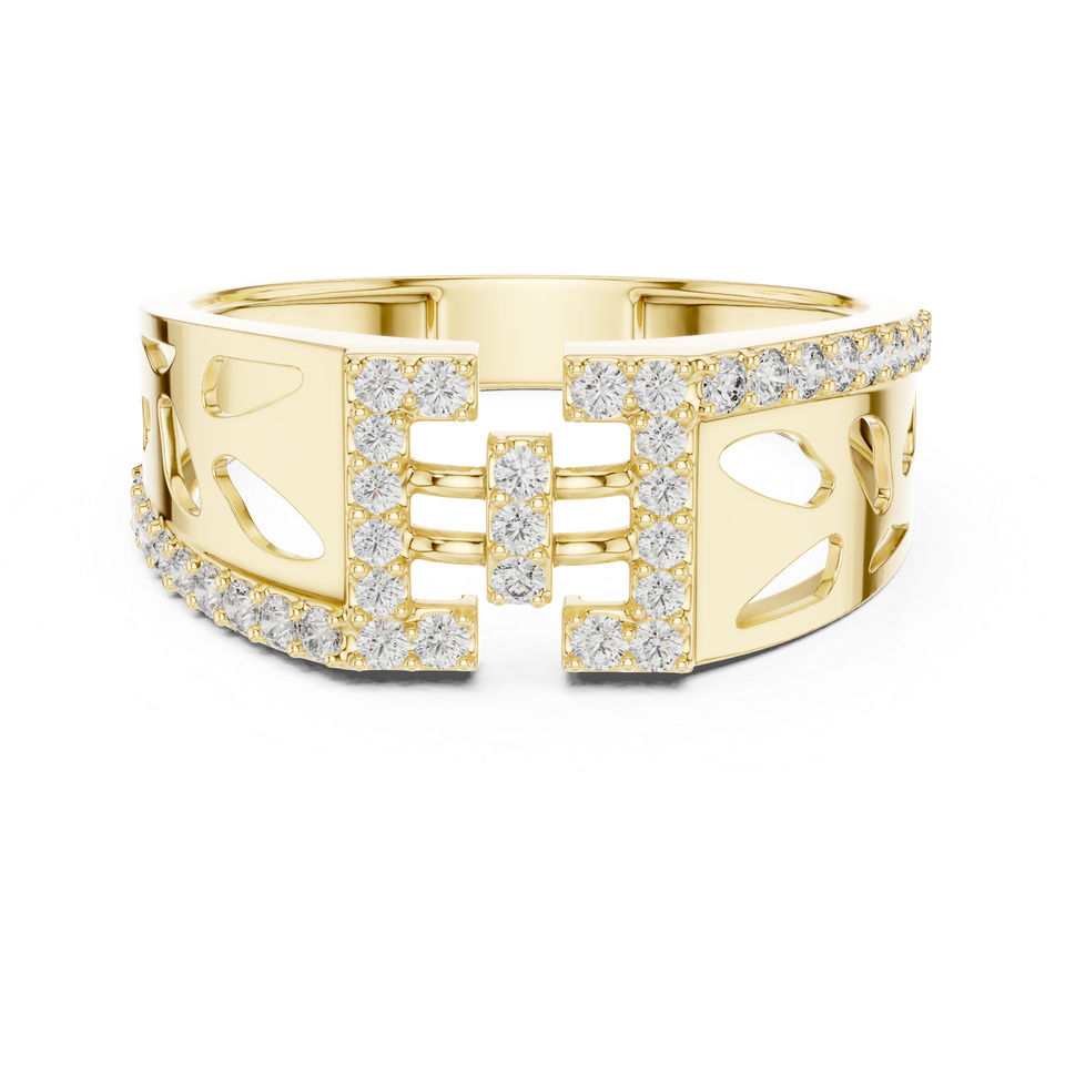 แหวนเพชรทรงกลมสีเหลืองทอง 14K สำหรับผู้หญิง | เพชรที่เพาะเลี้ยงใหม่