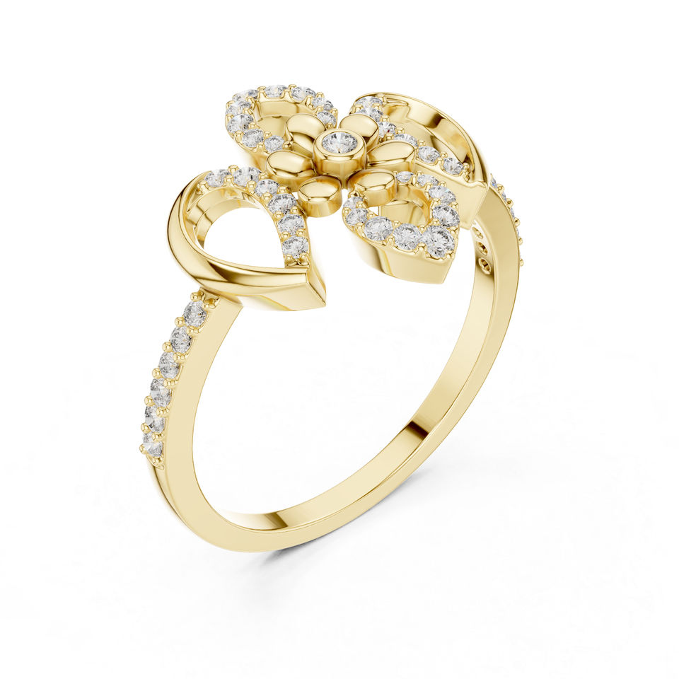 แหวนหยดน้ำเพชรทรงกลมสีเหลืองทอง 14K สำหรับผู้หญิง | ชุดลำลองประจำวัน | เพชรที่เพาะเลี้ยงใหม่