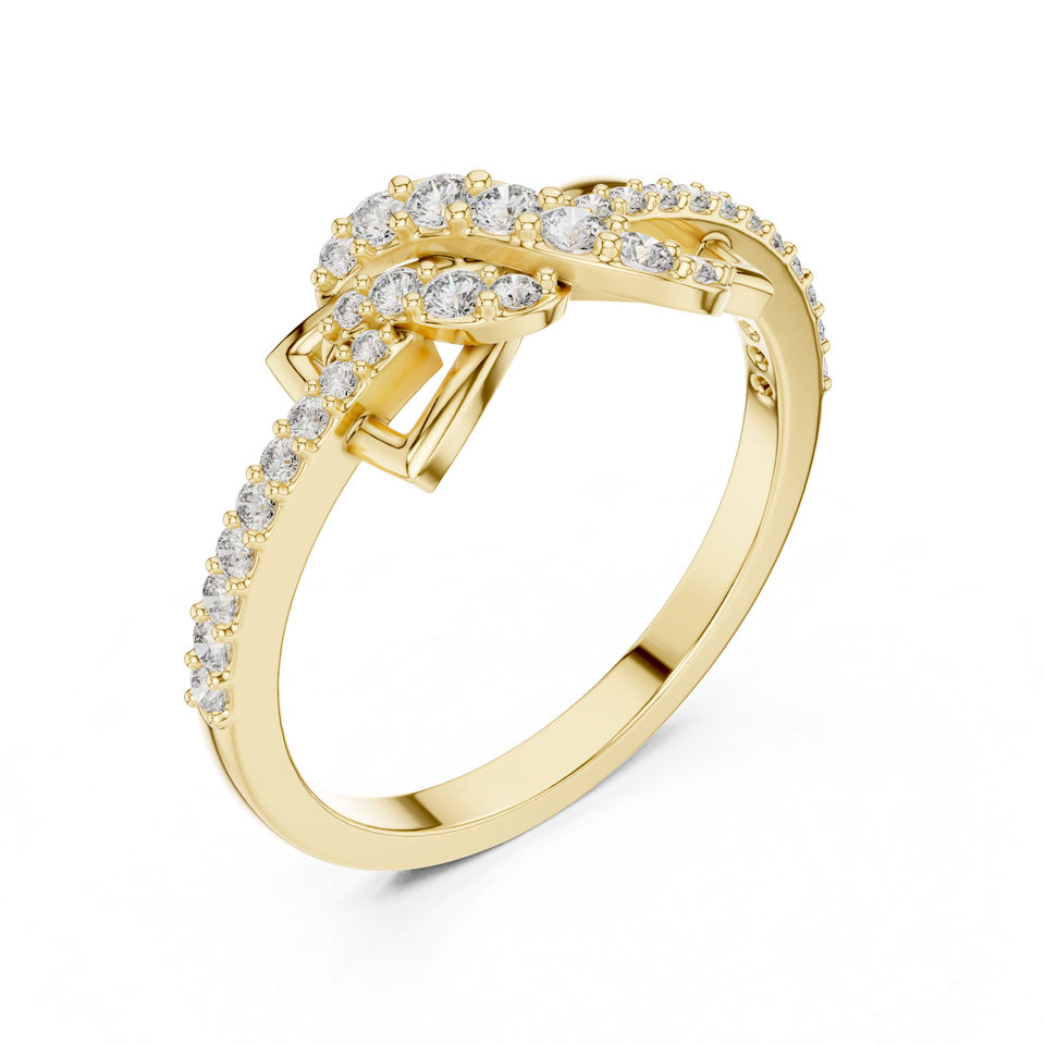 แหวนเพชรทรงกลมสีเหลืองทอง 14K สำหรับผู้หญิง | ชุดลำลองประจำวัน | เพชรที่เพาะเลี้ยงใหม่