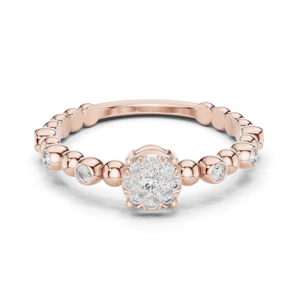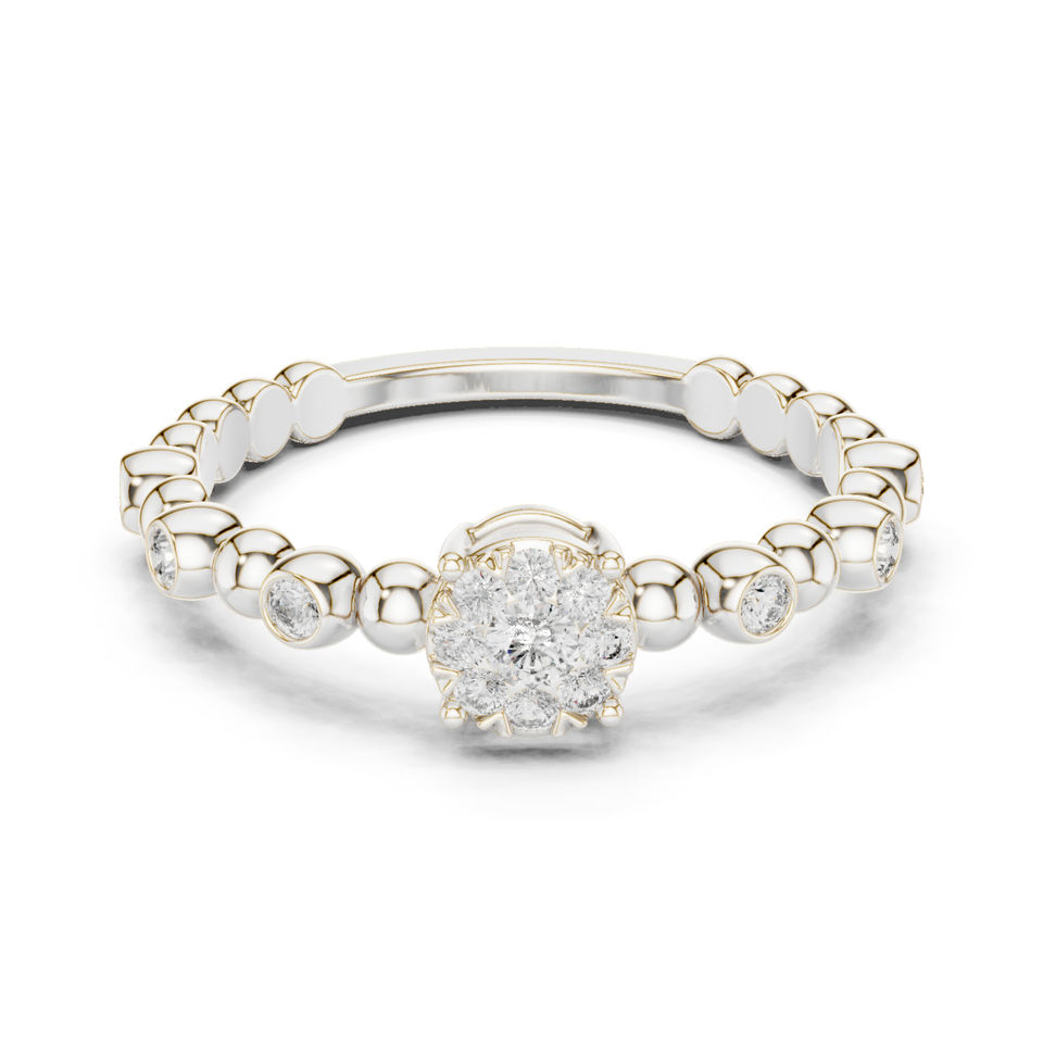 แหวนเพชรทรงกลมสีเหลืองทอง 14K สำหรับผู้หญิง | ชุดออกงาน | เพชรที่เพาะเลี้ยงใหม่