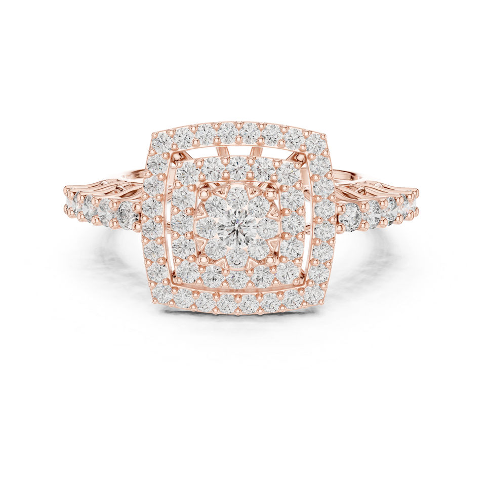 แหวนทองคำ 14K ประดับเพชรทรงกลมเพาะเลี้ยงในห้องปฏิบัติการ ของขวัญวันครบรอบสำหรับผู้หญิง | เพชรที่เพิ่งเพาะเลี้ยง