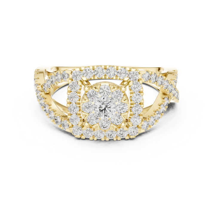 แหวนหมั้นเพชรทรงกลมทองคำ 14K สีเหลืองสำหรับผู้หญิง | เพชรที่เพิ่งเพาะเลี้ยง