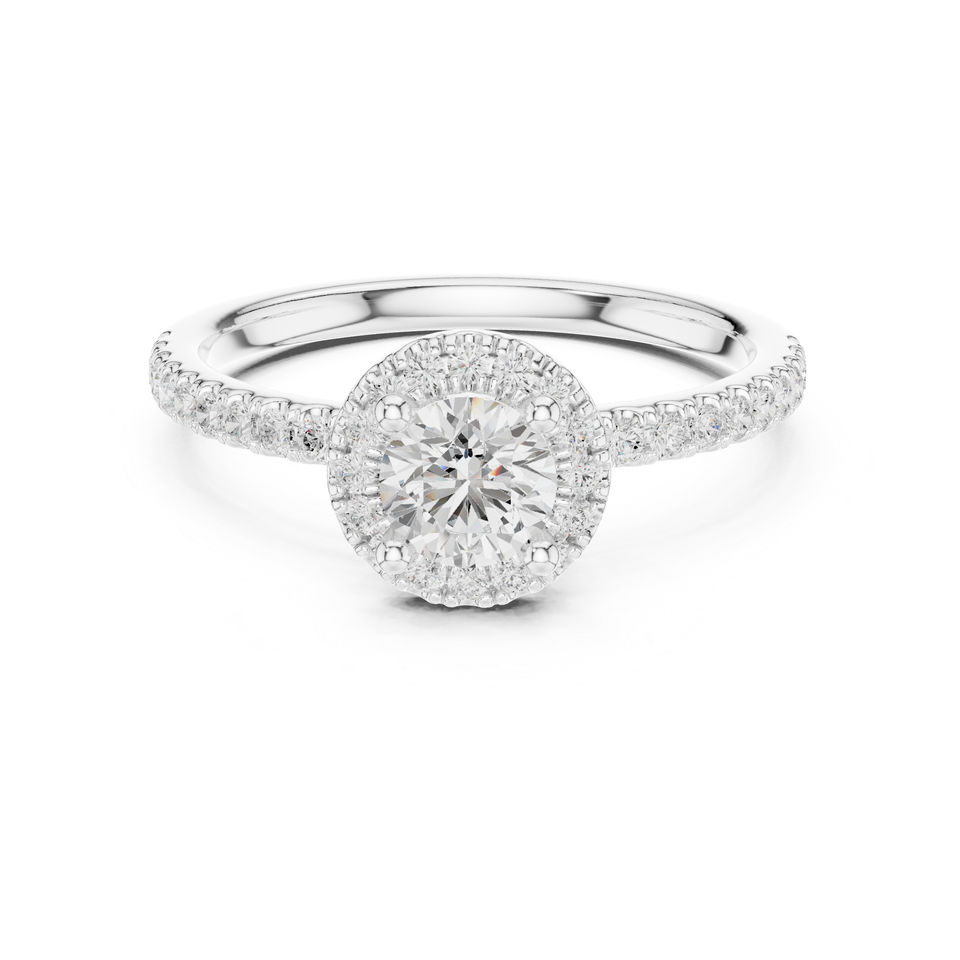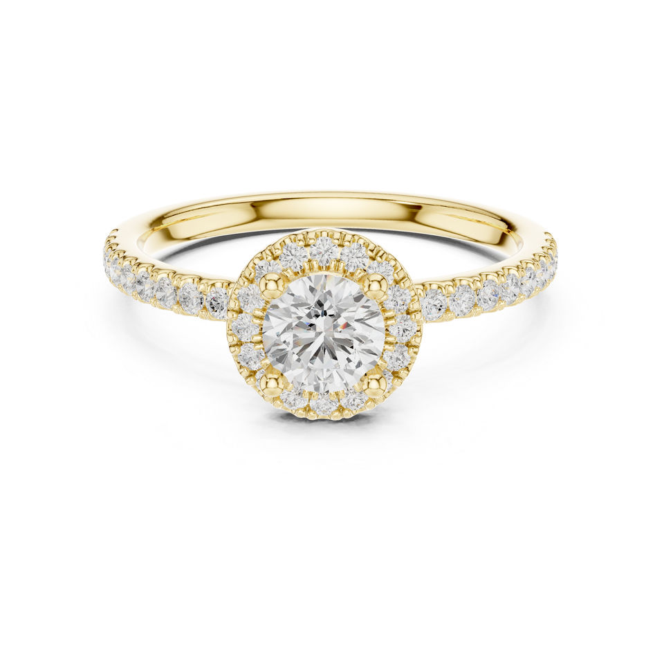 แหวนหมั้นเพชรทรงกลมทองคำ 14K สีเหลืองสำหรับผู้หญิง | เพชรที่เพิ่งเพาะเลี้ยง