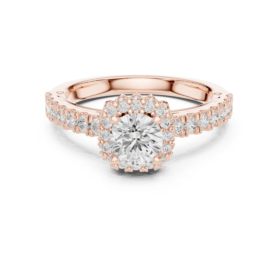 แหวนทองคำ 14K ประดับเพชรทรงกลมเพาะเลี้ยงสำหรับผู้หญิง สวมใส่ในงานปาร์ตี้ | เพชรที่เพิ่งเพาะเลี้ยง
