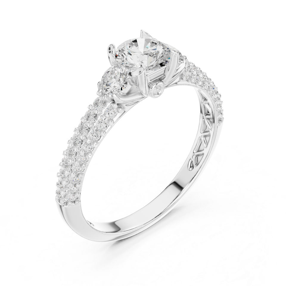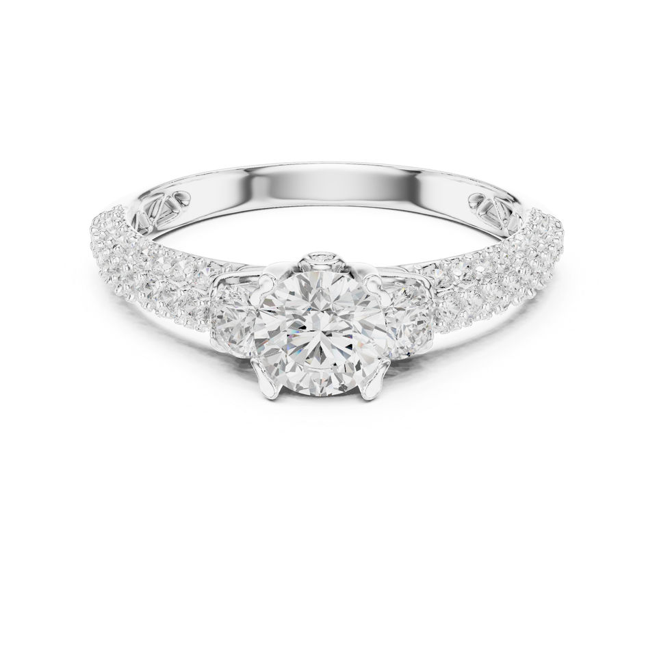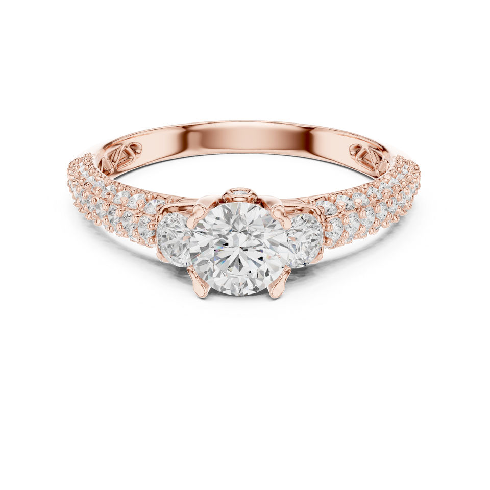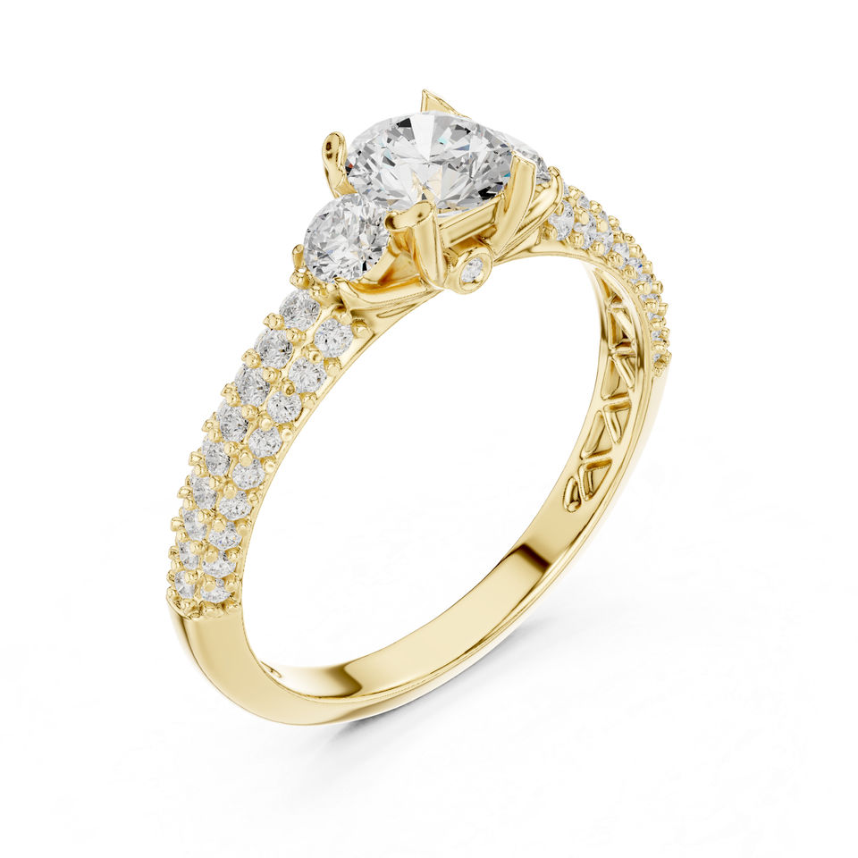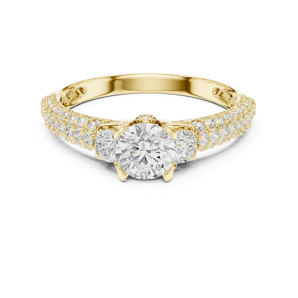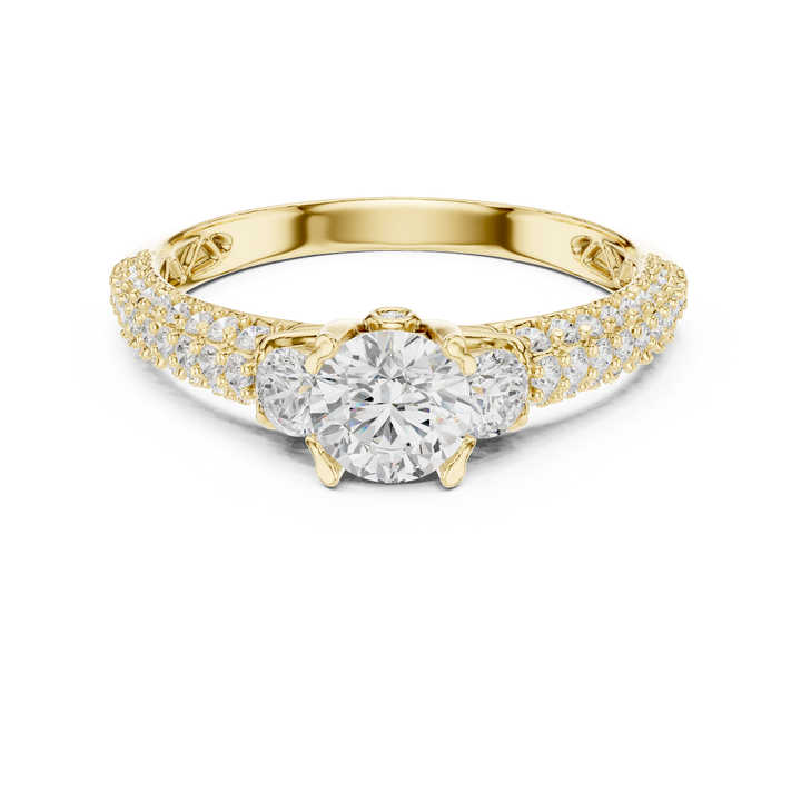 แหวนเพชรทรงกลมทองคำ 14K สำหรับผู้หญิง | ชุดทำงาน | เพชรที่เพิ่งเพาะเลี้ยง