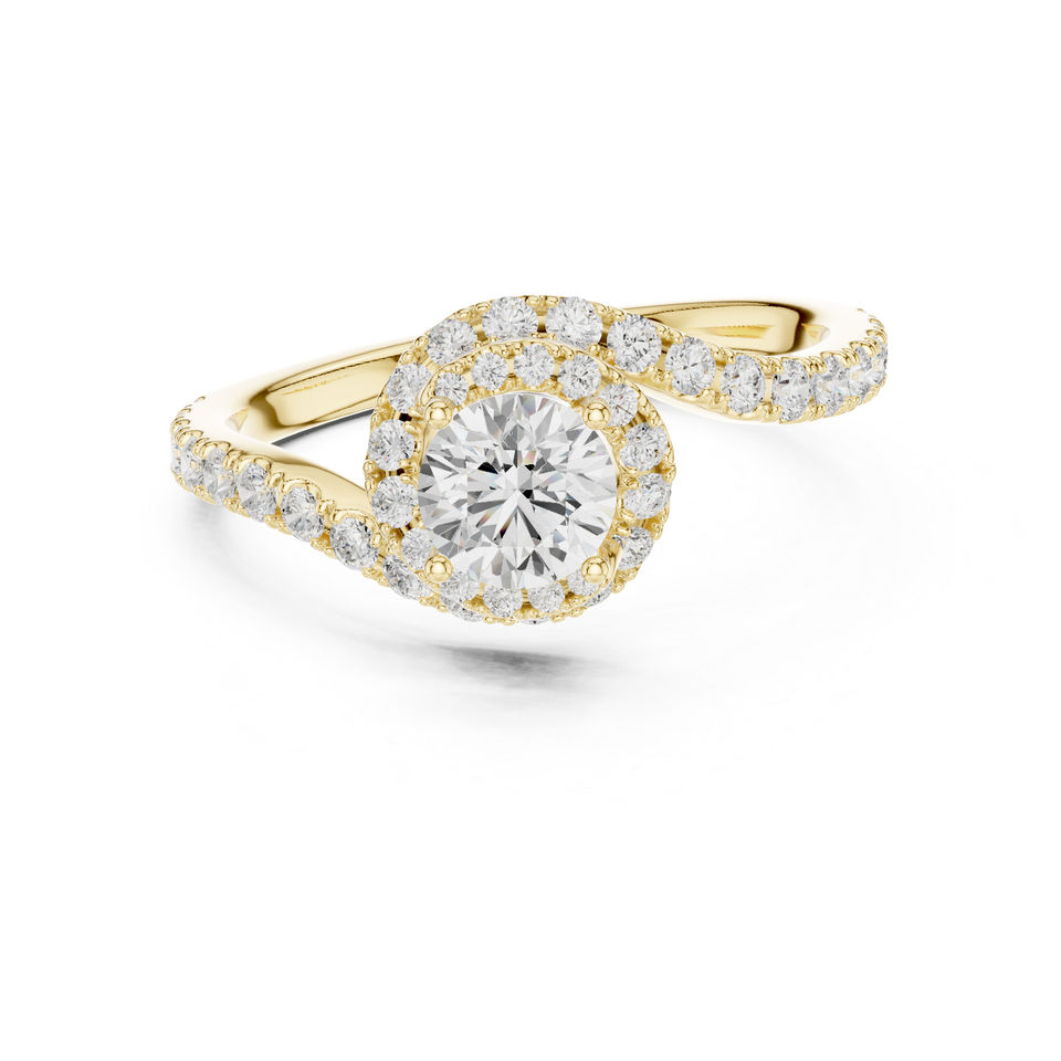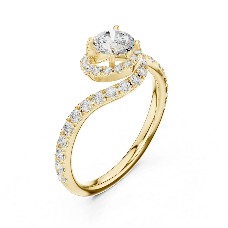 แหวนแต่งงานเพชรทรงกลมเพาะเลี้ยงในห้องปฏิบัติการ ทองคำ 14K สีเหลือง สำหรับผู้หญิง | เพชรที่เพิ่งเพาะเลี้ยง