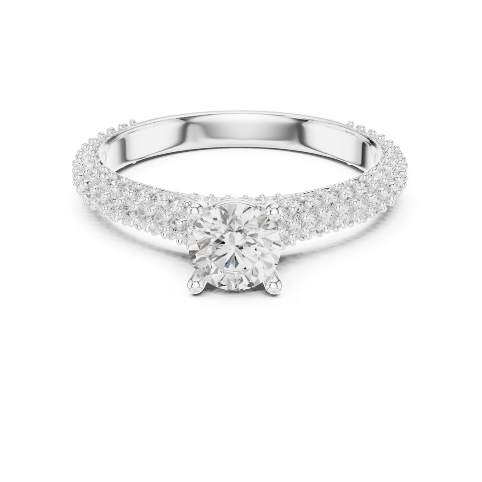 แหวนแต่งงานเพชรเม็ดเดี่ยวทรงกลมทองคำขาว 14K เพชรเพาะเลี้ยงสำหรับผู้หญิง เพชรเพาะเลี้ยงใหม่