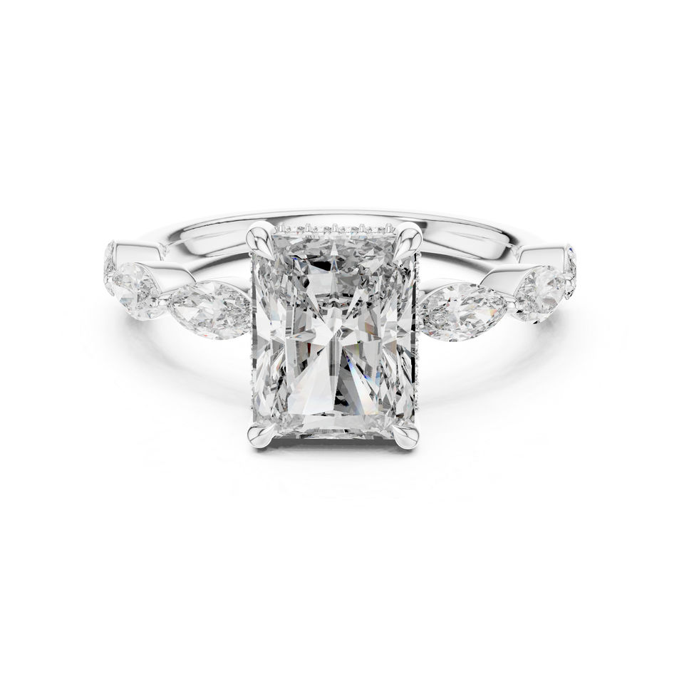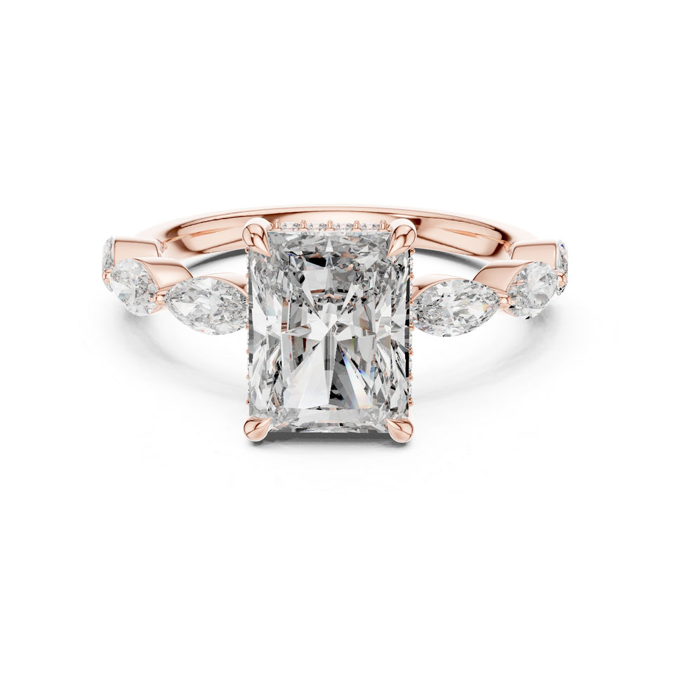 แหวนแต่งงานหรูหราสำหรับผู้หญิง ทองคำ 14K สีเหลือง ประดับเพชรทรง Radiant Cut น้ำหนัก 3.7 กะรัต เพาะเลี้ยงในห้องปฏิบัติการ ได้รับการรับรองจาก IGI | เพชรที่เพิ่งเพาะเลี้ยง