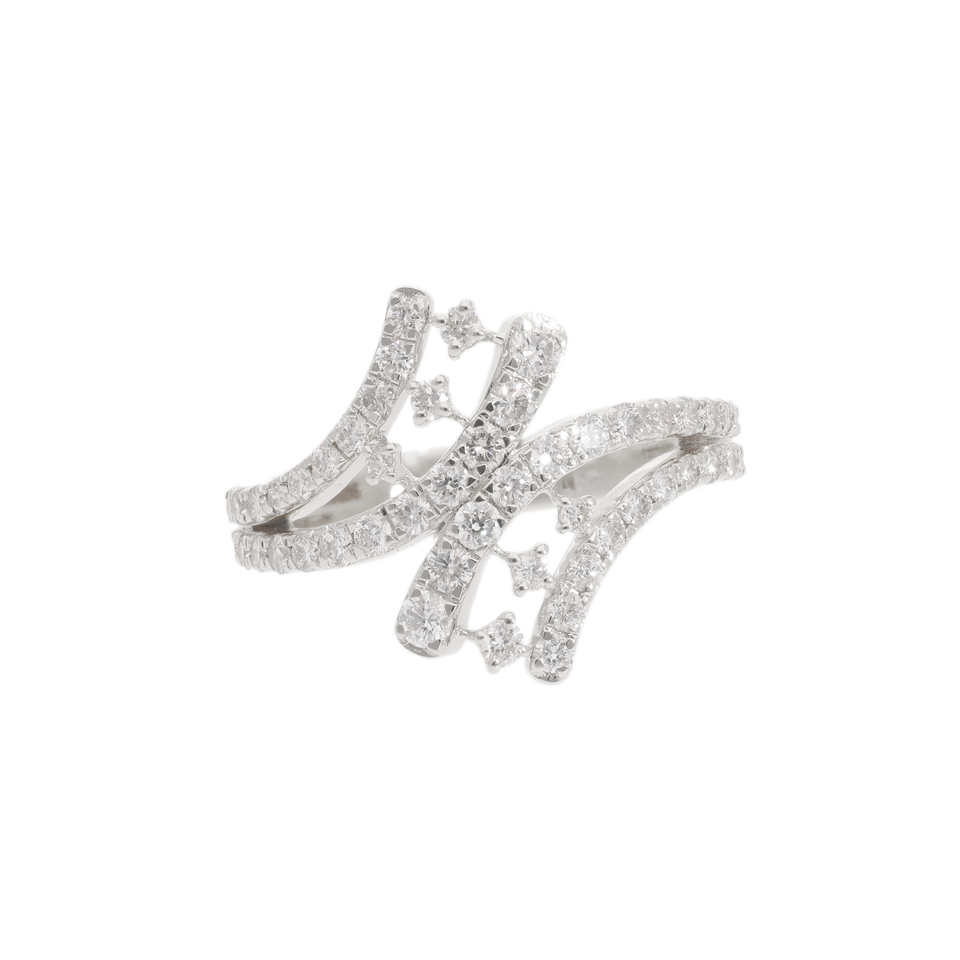 แหวนทองคำสีเหลือง14K พร้อมเพชรกลมธรรมชาติในดีไซน์คลื่นหลายแถวแบบไหลได้และมีง่ามสำหรับผู้หญิง
