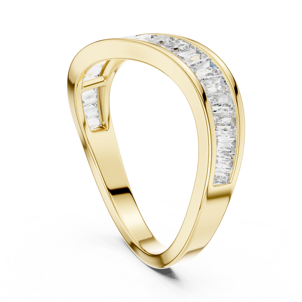 แหวนเพชรทรงบาแกตต์แบบช่องฝัง 14K ทองคำเหลือง สำหรับผู้หญิง ฉลองวันครบรอบหมั้นหมาย