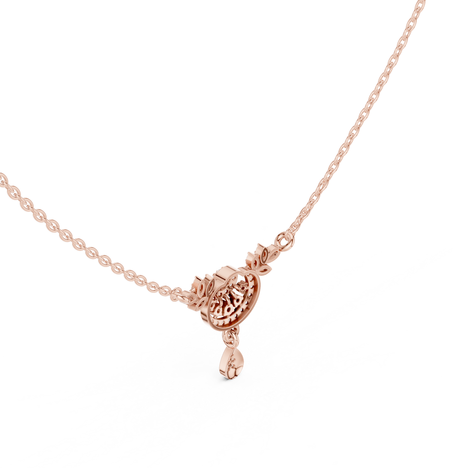 14K สร้อยคอจี้เพชรรูปดอกไม้ประดับเลเซอร์โรสโกลด์พร้อมจี้หยดน้ำตาเครื่องประดับสตรีทันสมัย