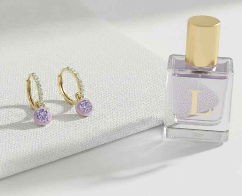 ต่างหูห่วงทอง 14K ประดับอเมทิสต์เคลือบเงา พร้อมจี้ถอดได้ เครื่องประดับสุดหรูสำหรับผู้หญิง สวมใส่ได้ทุกวันอย่างสง่างาม